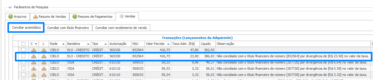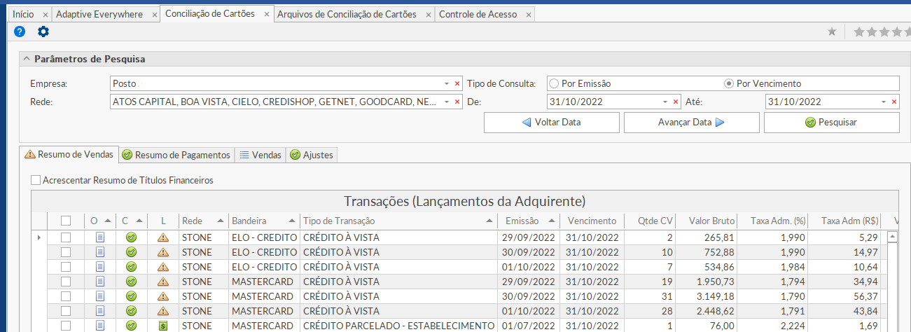 Versão 3.24.05 — 4.2.10 Conciliação de Cartões