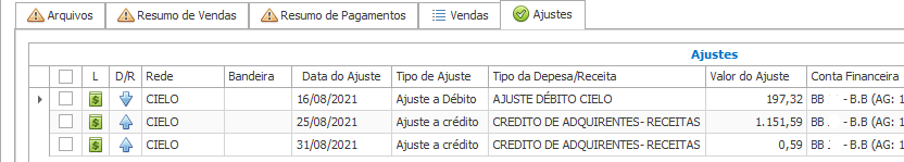 Habilitando a correção do recebimento de venda, o usuário autoriza ajustes automáticos nos recebimentos de venda quando existirem divergências de bandeira, rede, tipo de transação e NSU. Erros de valores não são contemplados nesse parâmetro como por exemplo divergência de taxas.