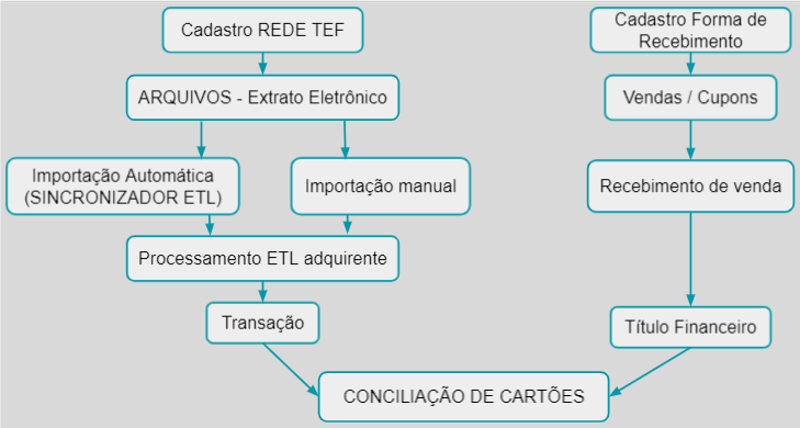 Nesse processo, a conferência de recebimentos em cartão e o faturamento de cartões se tornam automáticos.
