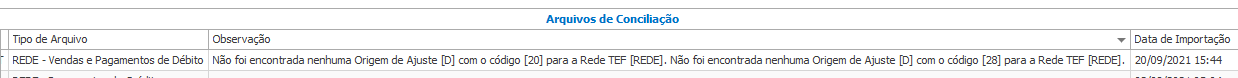 A coluna observação poderá mostrar o motivo de erros no processamento do arquivo